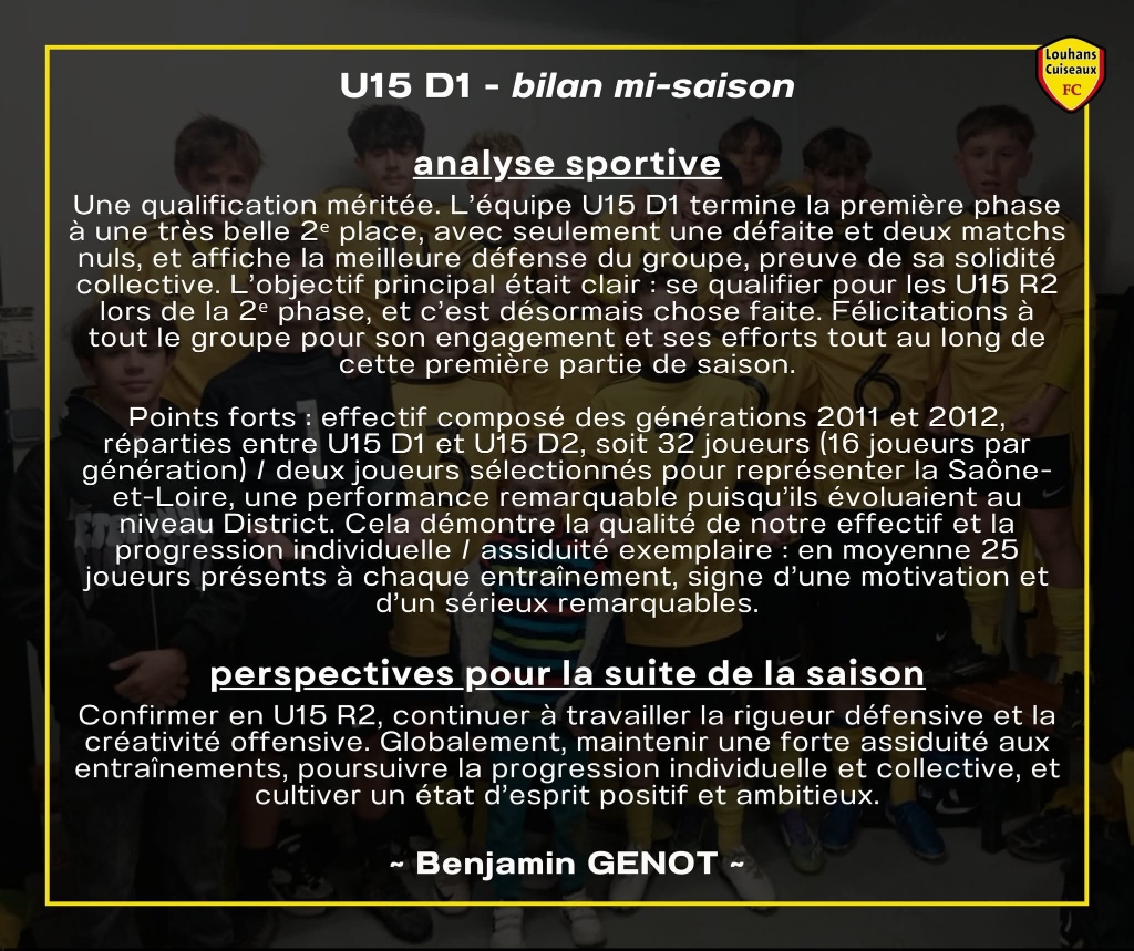 BILAN MI SAISON U15D1