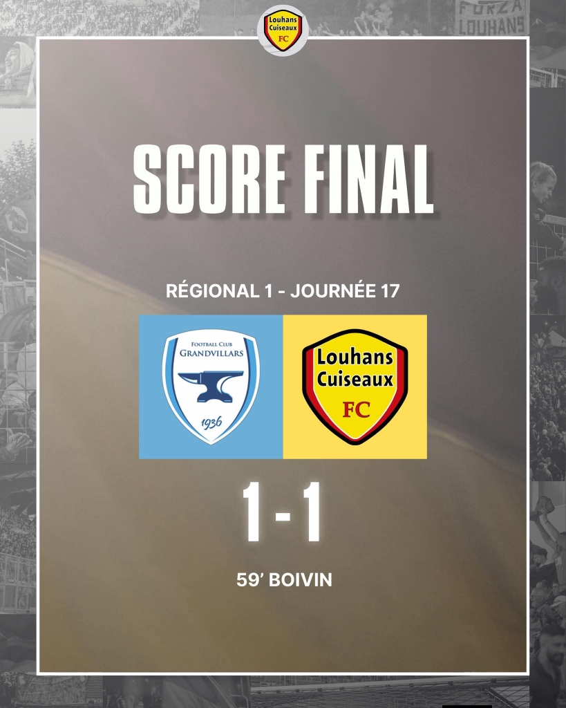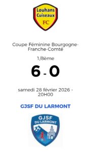 C’est fini à PONTARLIER : VICTOIRE DE L’EQUIPE FANION DE LOUHANS CUISEAUX FC grâce à un doublé de Yohann : 0 à 2